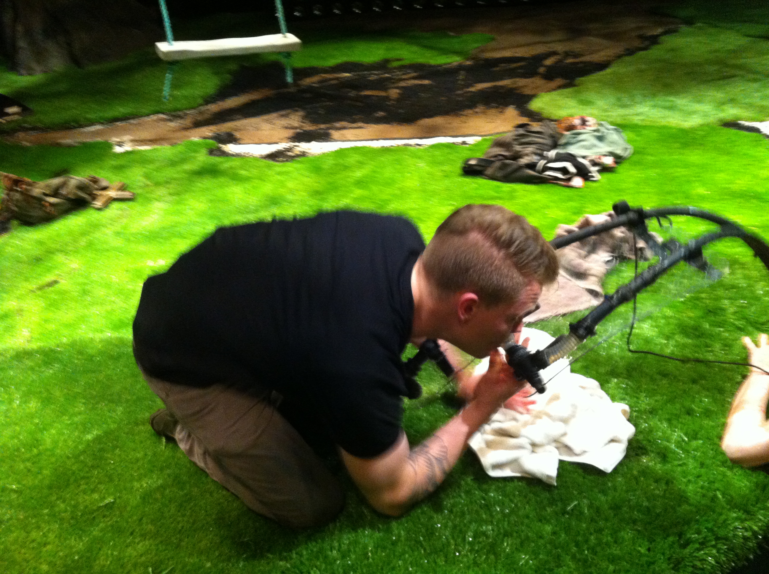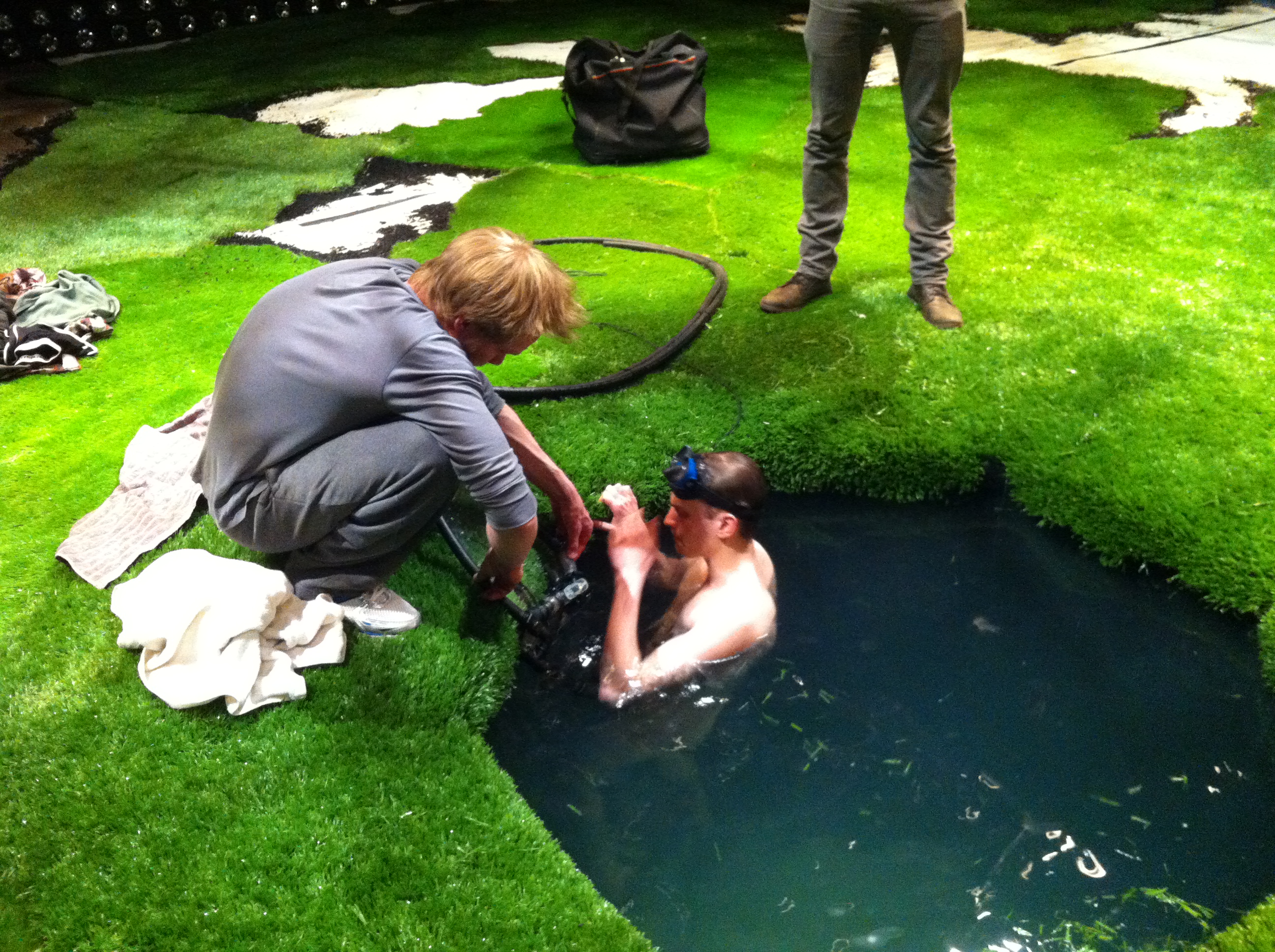 á meðan flestir sitja klesstir í sófum að horfa á Júróvisjón eru Vesturportarar í leikhúsinu, busslandi í vatni og grænu grasi að undirbúa frumsýninguna á Bastörðum …
