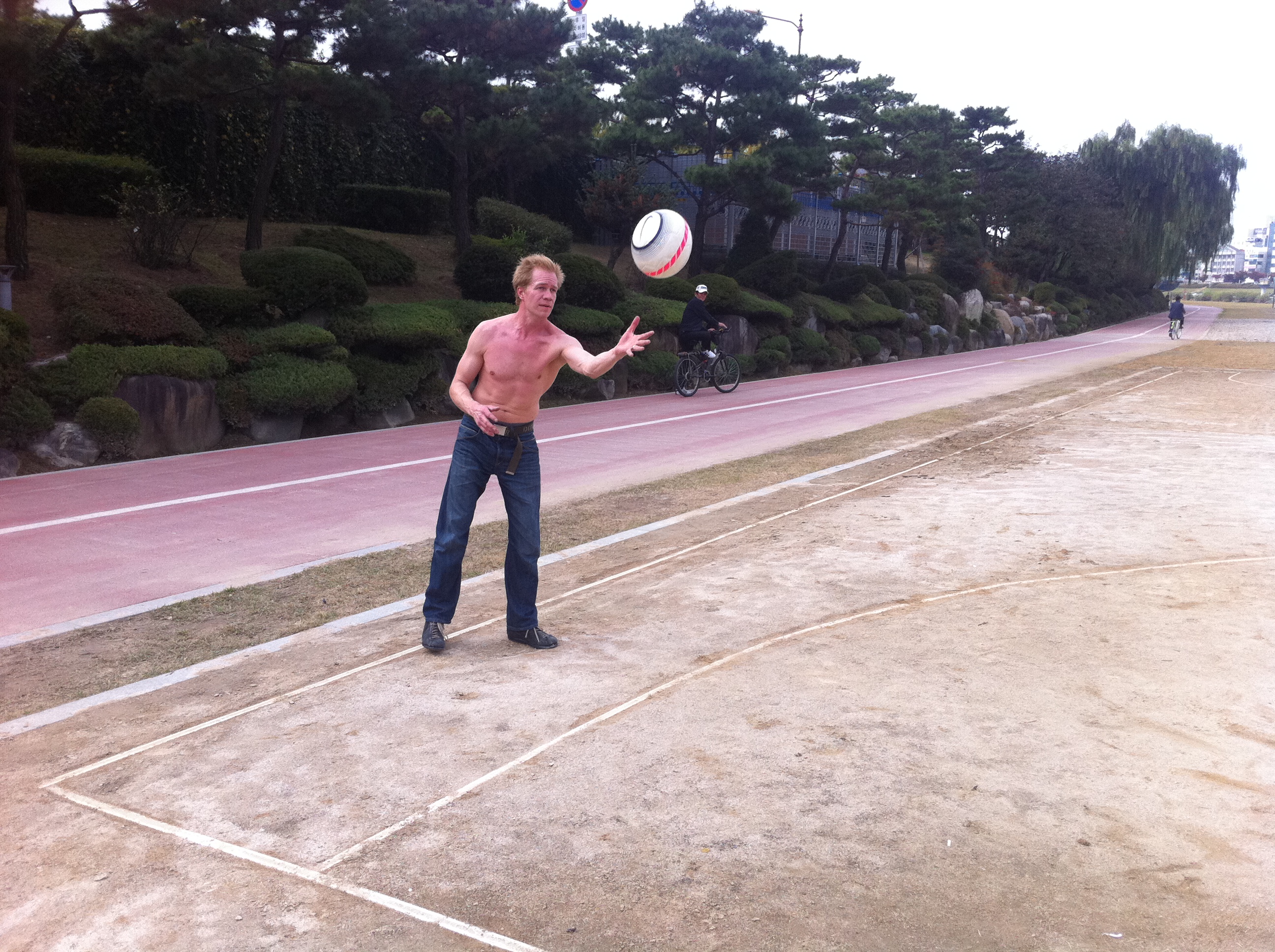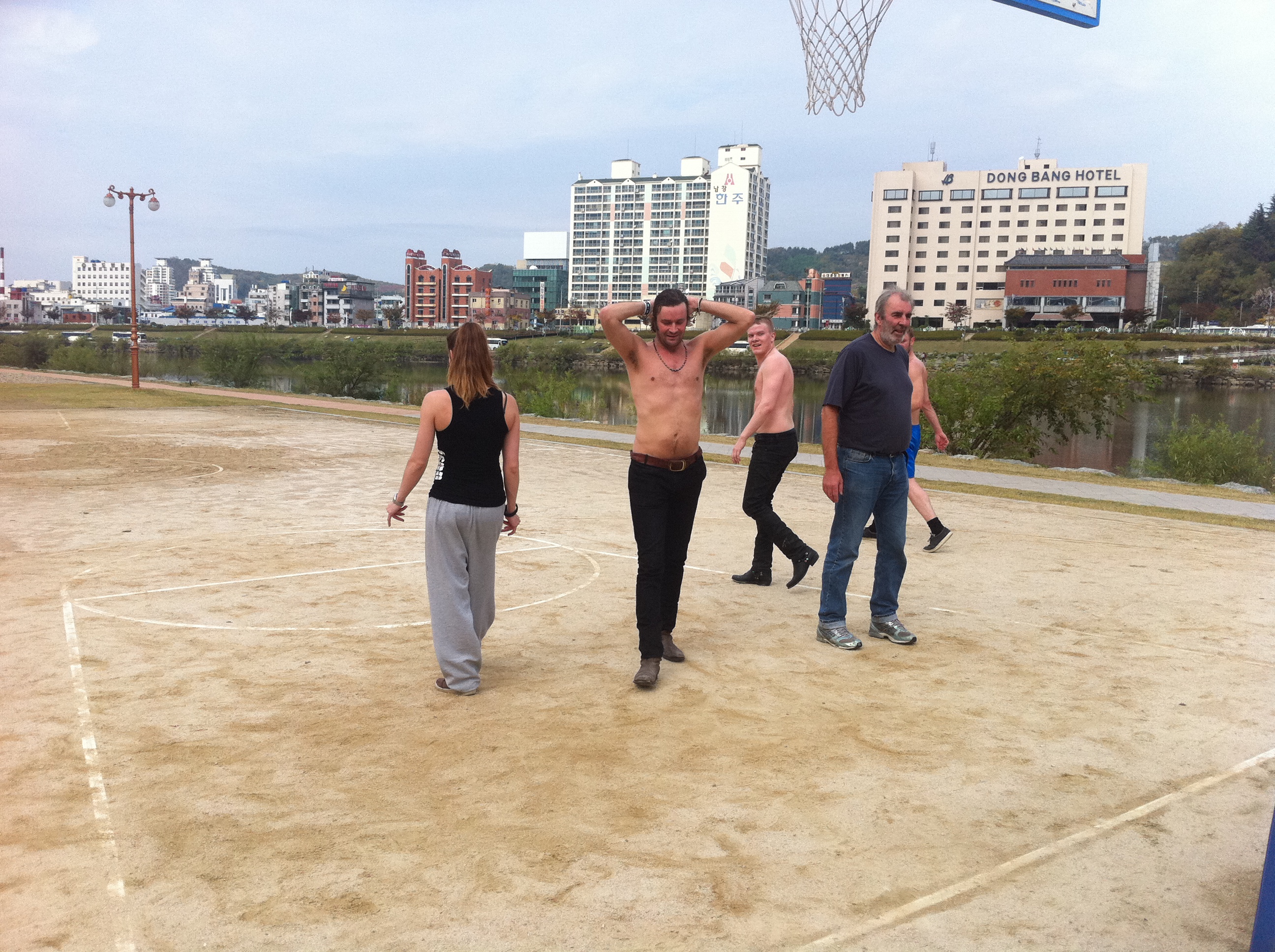 Við byrjuðum daginn í gær á smá líkamsrækt, ætluðum reyndar að fara í fótbolta en fundum engan völl… enduðum því í körfubolta meðfram ánni í miklum hita & raka – það er frásögu færandi að mitt lið vann að sjálfsögðu