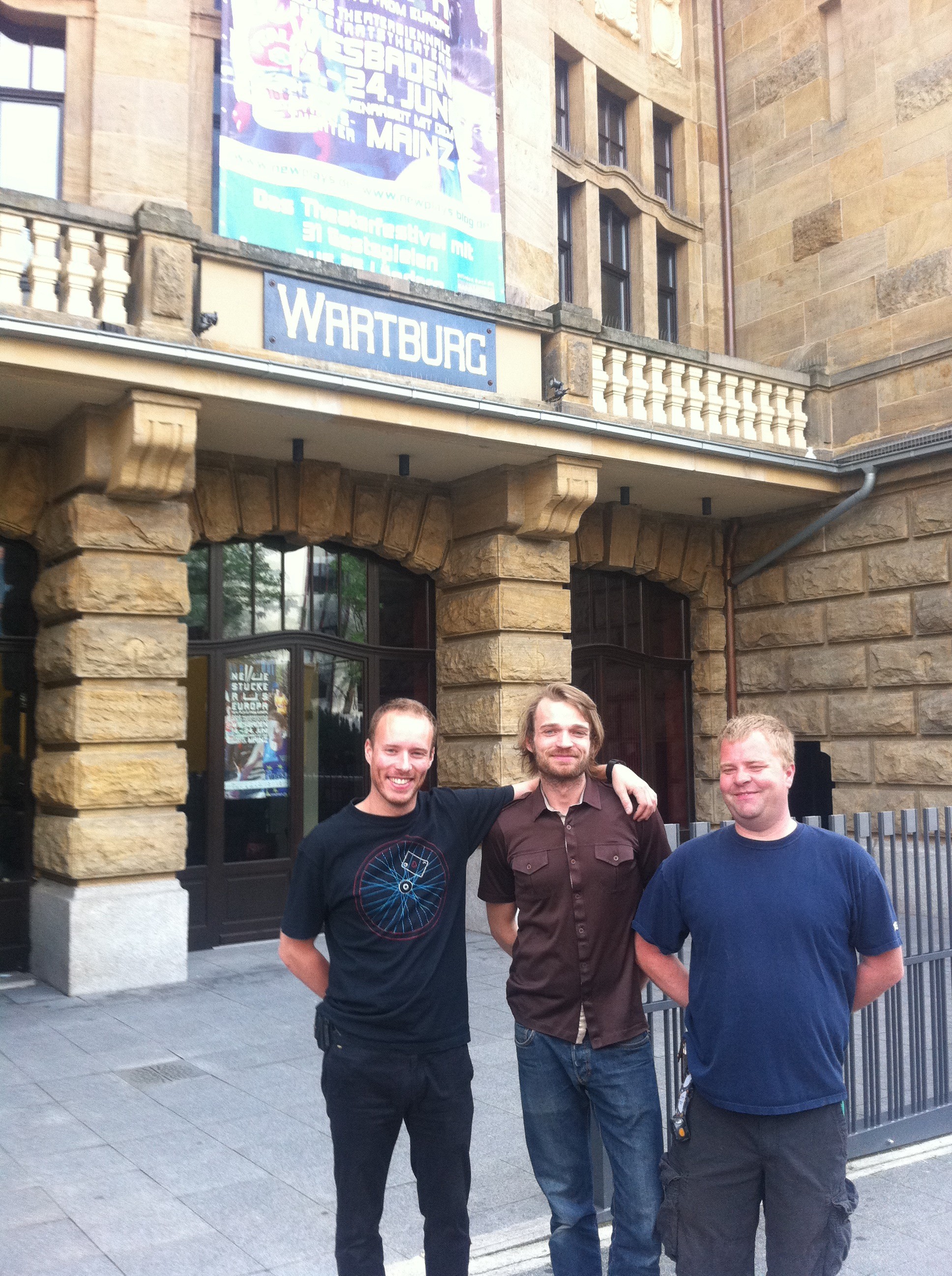 Annars er það að frétta af leikhúsinu WARTBURG þar sem Axlar Björn verður sýndur í kvöld að engin annar en sjálfur ELVIS kom til Þýkslands, Wiesbaden þegar hann var í hernum og spilaði í sama sal og við erum í… ekkert amalegt að vera á sama stað og kóngurinn var ! Ekki frá því að það sé hægt að heyra óminn af honum ef vel er hlustað…
